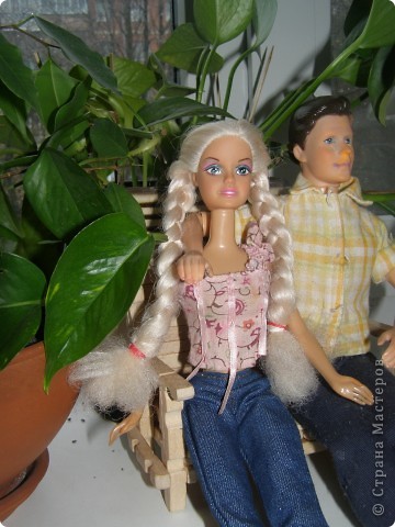 Сделали мы для наших кукол колодец и немножко мебели. Куклы - они такие, сооруди им кровать - тут же понадобится белье, потом стол, стулья и т.д. Наши уже значительно нас потеснили. Но процесс увлекает. "Производством" кукольной мебелюшки занялся даже наш папа.
